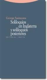 Los Soliloquios fueron escritos por George Santayana entre 1914 y 1921, y pueden leerse de forma independiente, aunque unos llevan a otros. Su estilo empuja suavemente al lector, como el Támesis invocado al comienzo, desde la atmósfera inglesa hasta el mito de Hermes, deteniéndose en los castillos de nubes, en los esnobs, en los efectos de la Gran Guerra, en las ironías del liberalismo o en las oscilaciones de la filosofía británica. Platón y Aristóteles, Matthew Arnold y William Wordsworth, Goethe y Shakespeare, el pensamiento hindú y la mitología griega, el paisaje castellano y la literatura española, el psicoanálisis y la nueva física adornan este recorrido.